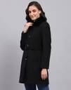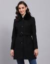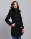 Monte Carlo Womens Solid Black Collared Neck Full Sleeve Coat. Made from Wool Blend fabric.