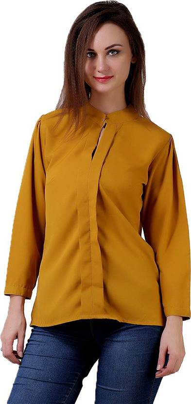 MOODY Formal Regular Sleeves Solid Women Yellow Top