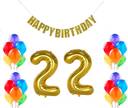 MoohH Combo For Birthday Party Decoration ( Guilter Happy Birthday Banner + 22 Number Gold Foil balloon + 50 pcs Multicolor Metallic balloon) (Pack of 53) (Set of 53)