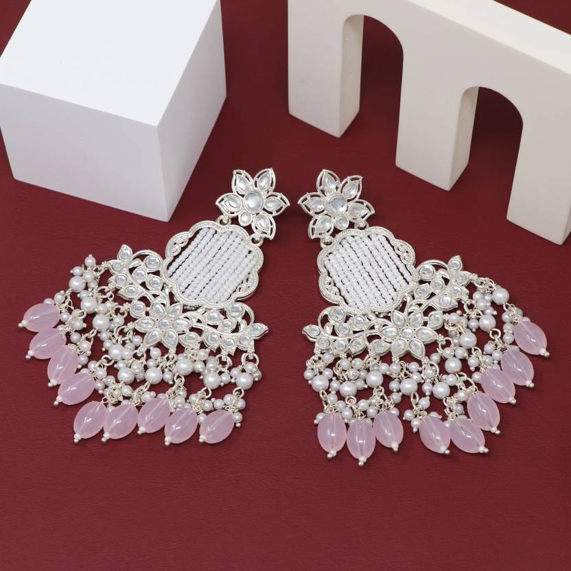 MOON ENTERPRISE Chandbali Kundan Pearl Beads Alloy Earring Set