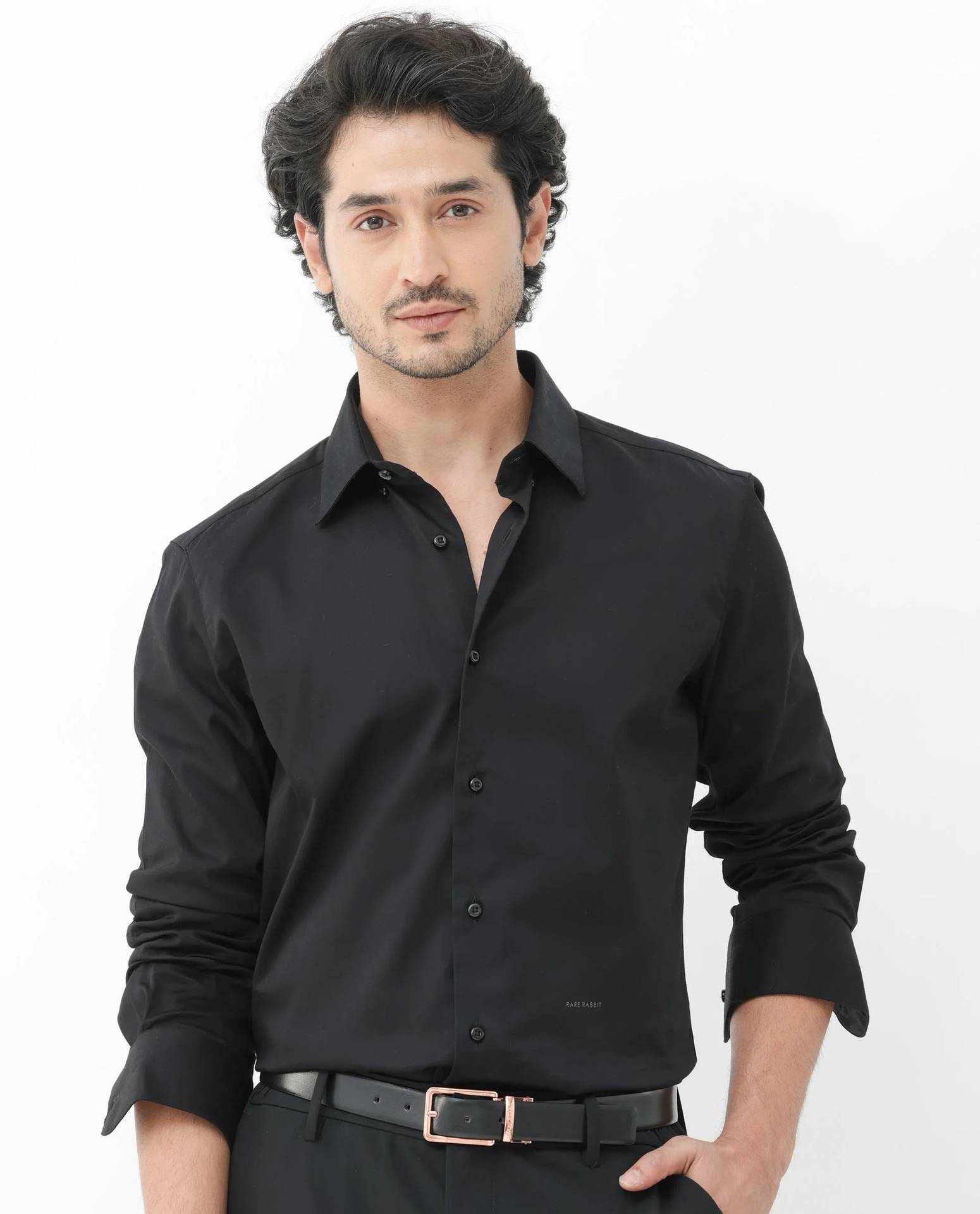 Men Slim Fit Solid Spread Collar Casual Shirt
