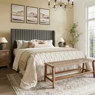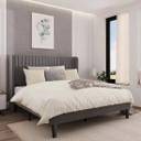 Mooncraft Premium Upholstered Bed | Bed King Size with Headboard | Cot for Bedroom Solid Wood King Bed (Finish Color - Grey, Delivery Condition - DIY(Do-It-Yourself))