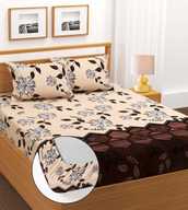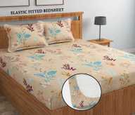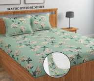 Moonroof Cotton King Fitted (Elastic) 255 TC Printed Bedsheet (Pack of 1, Multicolor, Pink)
