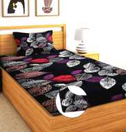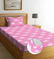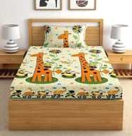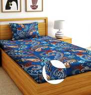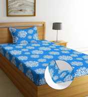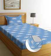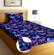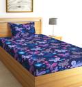 Moonroof Cotton Single Fitted (Elastic) 240 TC Printed Bedsheet (Pack of 1, Blue Butterfly)