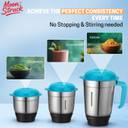 The inclusion of three speciality jars adds to the mixer's versatility. Each jar fulfils a variety of culinary needs and serves a specific purpose. Shakes, smoothies, and other liquid mixes are a breeze to prepare with the liquidising jar because of its powerful blending capabilities. The dry grinding jar does the grinding work for you, making sure your dish has an authentic flavour. Chutney jars can be used to make delicious condiments that improve the flavour of your meals.