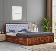 MoonWooden Bed With Storage Wooden Double Bed Solid Wood King Box Bed (Finish Color - Natural, Delivery Condition - DIY(Do-It-Yourself))