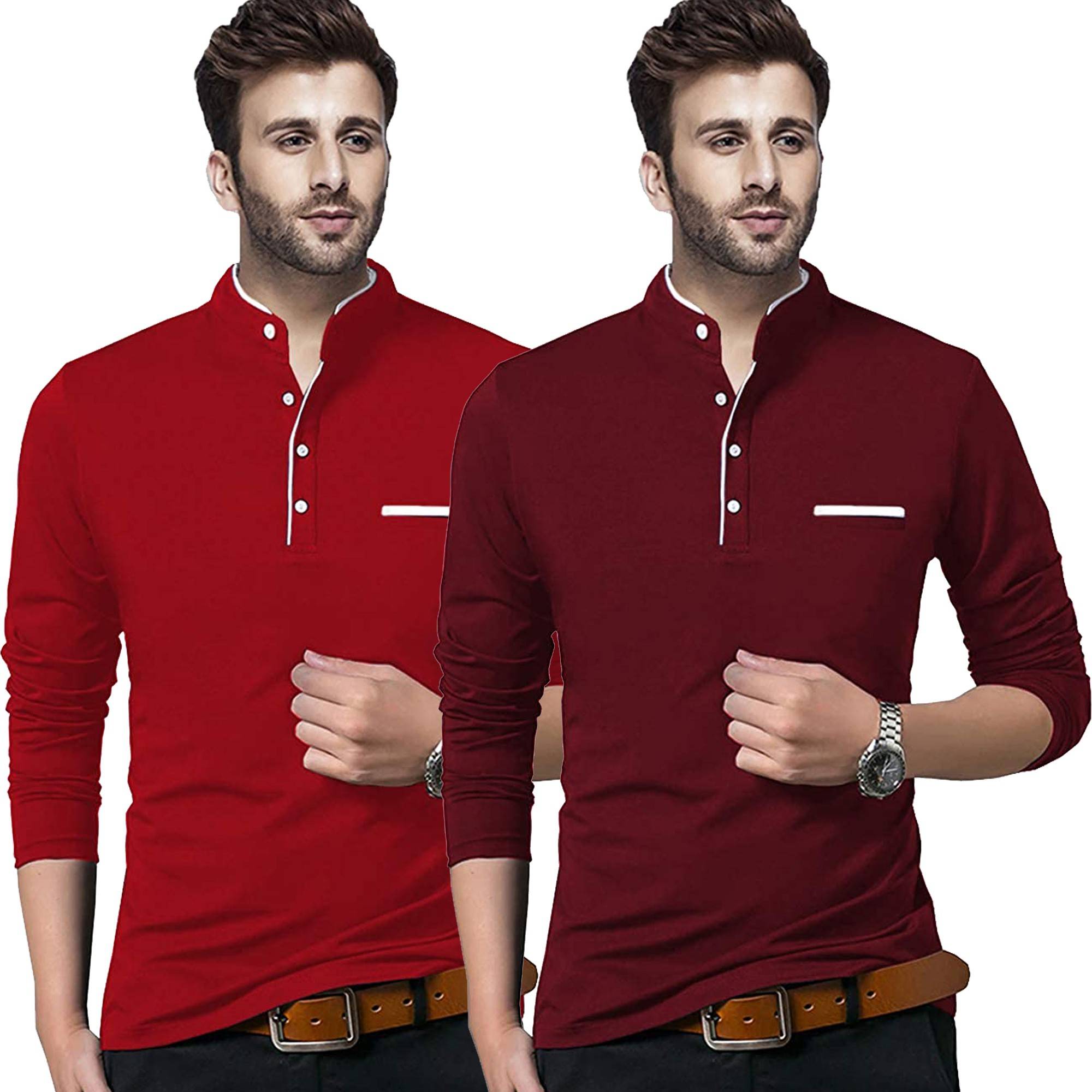 Moordale Pack of 2 Men Solid Mandarin Collar Cotton Blend Multicolor T-Shirt