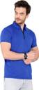 Men Solid Polo Neck Polyester Dark Blue T-Shirt