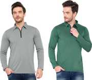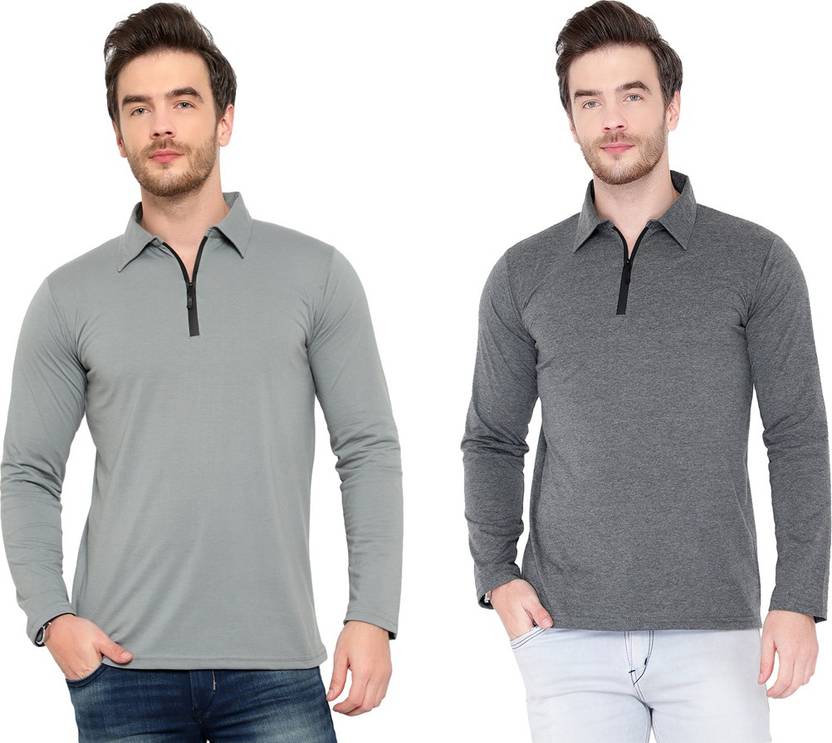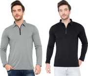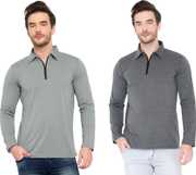 Pack of 2 Men Solid Polo Neck Cotton Blend Silver, Grey T-Shirt