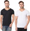 Pack of 2 Men Solid V Neck Cotton Blend White, Black T-Shirt