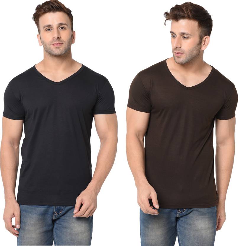 Adorbs Solid Men V Neck Brown, Black T-Shirt