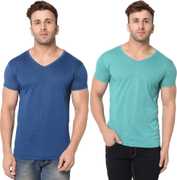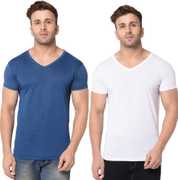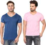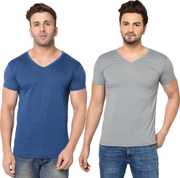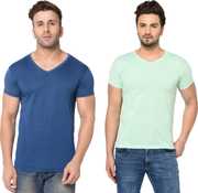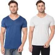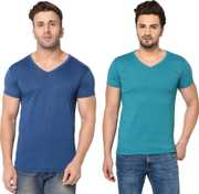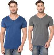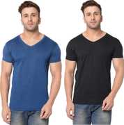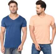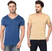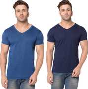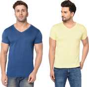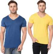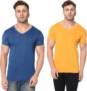 Jangoboy Solid Men V Neck Dark Blue, Yellow T-Shirt