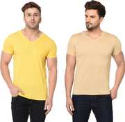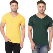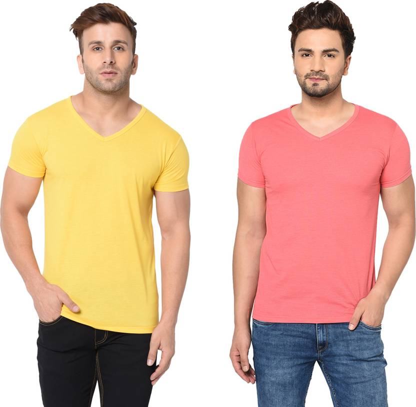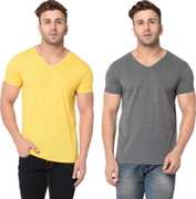 Jangoboy Solid Men V Neck Multicolor T-Shirt