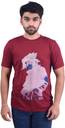 Men Printed Round Neck Pure Cotton Maroon T-Shirt