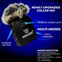 MOOZMOB (K205 Model) 2.4G Digital Wireless Microphones are designed to deliver superior audio clarity with advanced noise reduction technology, ideal for crowded and noisy environments. The dual microphones are equipped with dual 360° omnidirectional microphones, they capture clear and rich audio from all directions. The integrated muff further reduces background noise and helps the mic achieve rich-quality audio, ensuring a professional-quality recording experience. Featuring auto-pairing technology, these microphones connect to your device within 2 seconds, providing a seamless setup. The real-time audio monitoring support allows for instant feedback, so you can adjust your recording on the go. With multiple audio modes, including normal audio recording and noise cancellation, you have the flexibility to choose the best setting for your needs. The lavalier collar mic offers an impressive battery life of up to 6-10 Hours, making it perfect for extended recording sessions. The microphones also provide reliable connectivity up to 30 Meters, ensuring stable performance even at a distance. Compatible with a wide range of devices, including Type-C mobiles, , DSLRs, (Cameras with 3.5mm Interface) GoPro cameras, camcorders, and more. Ideal for YouTube live streams, vlogs, interviews, podcasts, ASMR recordings, and presentations, the collar microphone offers unmatched convenience and quality for all your recording needs.
