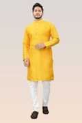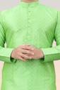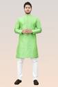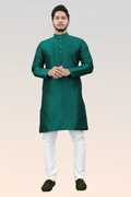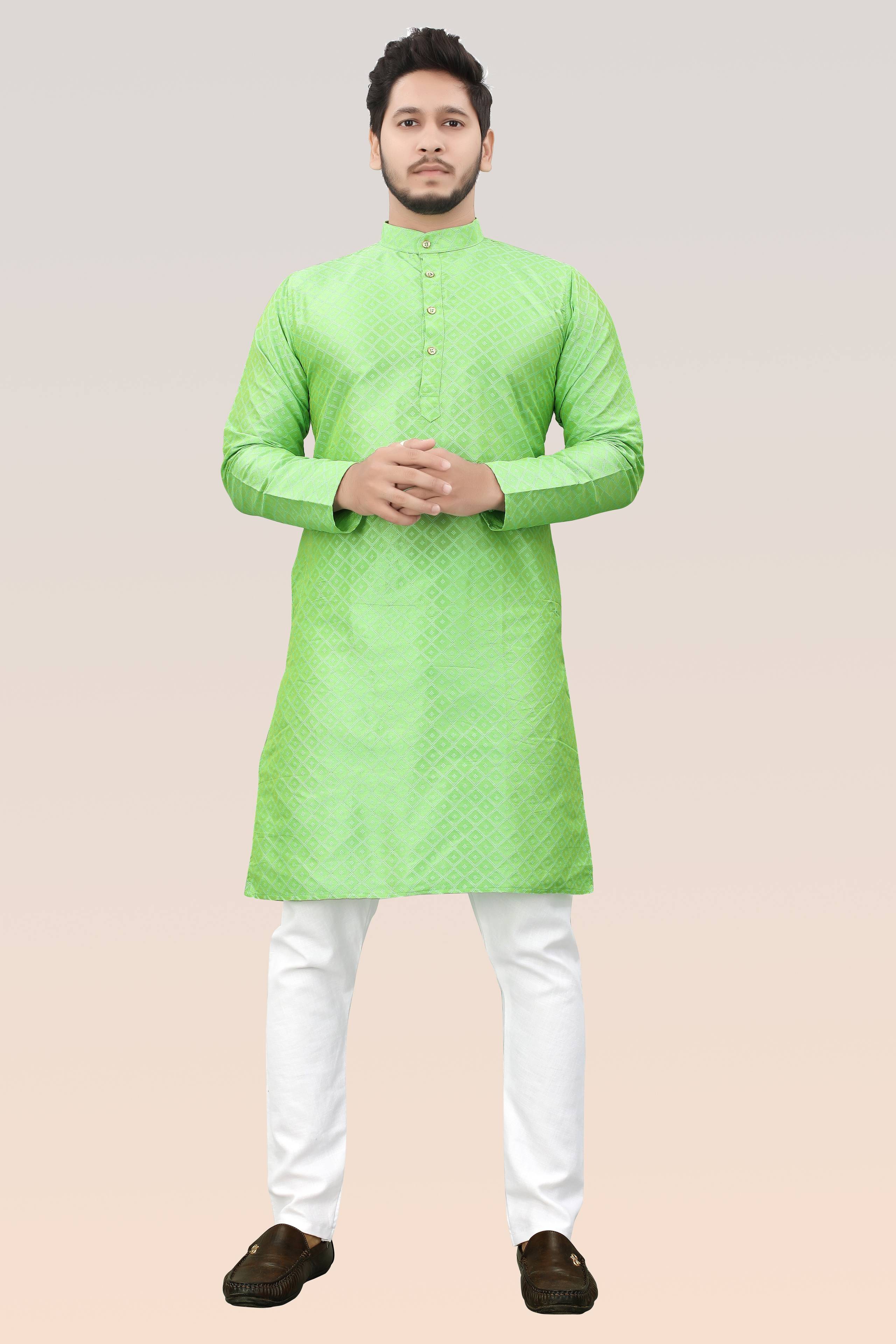 Stand out this festive season with Divra Clothing’s vibrant jacquard silk kurta. Crafted with intricate self-design detailing, this kurta features a classic mandarin collar and a polished buttoned placket, giving it a timeless ethnic appeal. The rich fabric ensures both comfort and elegance, making it the perfect choice for weddings, festivals, and traditional functions.