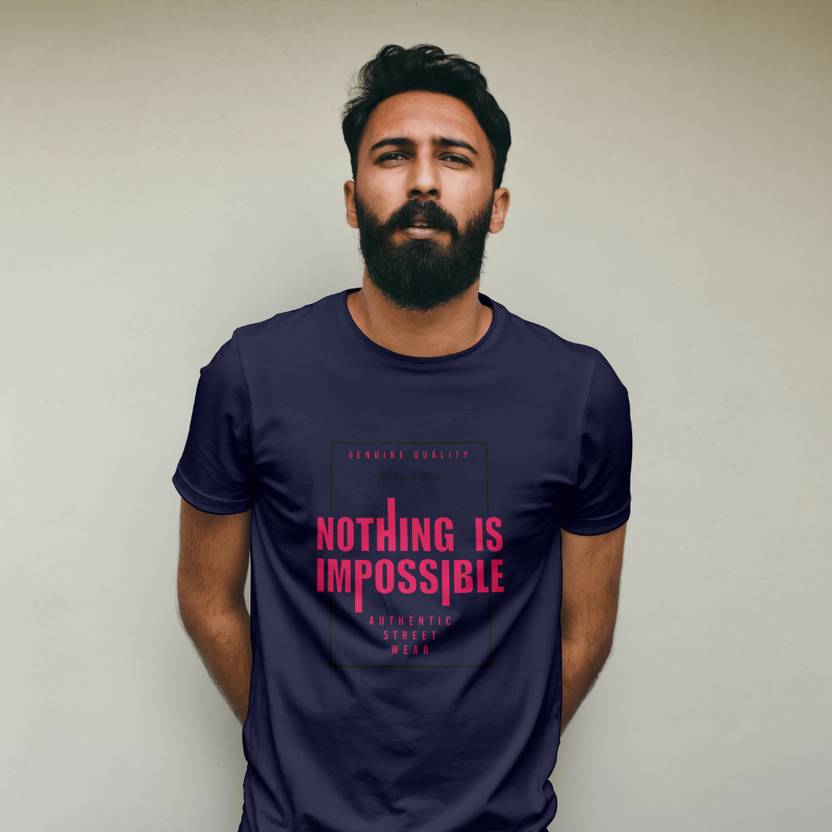 Men Printed Round Neck Polycotton Dark Blue T-Shirt