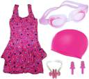 Girls Swimming Costume with Swim Goggles Swim Cap 2Ear Plug 1Nose Plug