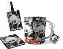 1 mug, 1 tea coaster , 1 keychain , 1 bag tag