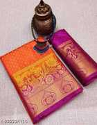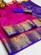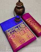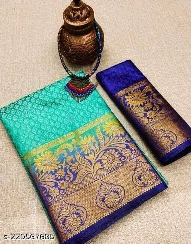 Morpich Fashion Self Design Banarasi Silk Blend Saree (Light Blue)