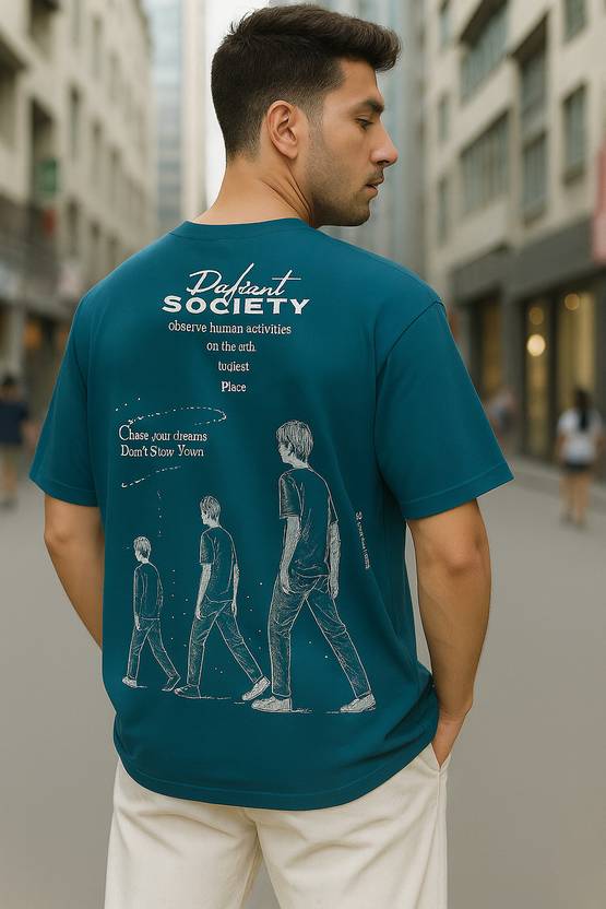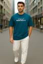 Men Printed Round Neck Pure Cotton Blue T-Shirt