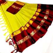 Soft Cotton Silk Elephant Design Sarees With ATTACHED BLOUSE ( ''CUT FROM SAREE ONE SIDE AND USE BLOUSE'' )Separate Blouse Piece Blouse Fabric: Cotton Silk Pattern: Zari Woven Blouse Pattern: Zari Woven Elegant elephant cotton silk saree. NOTE : Real product and image may be look different due to photography lighting sources and your mobile display brightness settings. Fabric:This Saree have soft finished Silk Fabric easy and Comfortable to wear.Occasions :This Saree is Specially design for wedding, Party and Festive Season of indian women's wear.Kanchi Pattu Silk Saree Running Blouse Piece Name: Kanchi Pattu Silk Saree Running Blouse Piece Saree Fabric: Cotton Silk Blouse: Running Blouse Blouse Fabric: Cotton Silk Pattern: Zari Woven With Blouse Piece kanchipuram sarees kanchipuram pattu sarees gadwal pattu sarees pure silk sarees Mysore silk saree pochampally silk saree Upada Pattu saree Mysore Elephant Design Cotton Silk Saree hathi saree cotton silk elephant sarees for women elephant sarees for women latest design hathi bor. Elephant Design Silk Saree With ATTACHED BLOUSE (''CUT FROM SAREE ONE SIDE AND USE RUNNING BLOUSE'' )