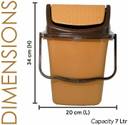 | Other features | - Made of durable BPA and Chlorine free shatter-resistant 100% Virgin Plastic. Made of superior quality unbreakable plastic to make it lightweight, strong and durable., This plastic dustbin is ideal for home, kitchen, hospitals, shops offices, beauty parlour, saloon, restaurants, washroom, toilets, apartments, coffee shop, conference room, office, hotel, catering, Enhances the appearance of your room and allows you to keep surroundings clean and hygienic, Modern design swing bin with rich colour options, Made of superior quality of plastic, Strong and durable Body, Easy to clean, Made of unbreakable plastic, Color: Camel, Material: Plastic, Contents: 2 pc Delight Swing Lid Plastic Dustbin, Capacity: 7 Ltr