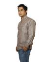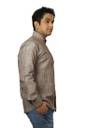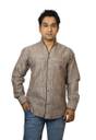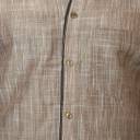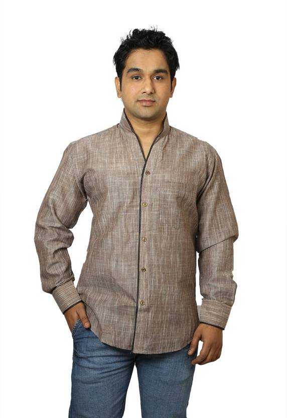 Choco and white woven textured Casual shirt, has a chinese collar & V-Neck, full button placket on the front, long sleeves with two button cuffs, branding label on the neck, a patch pocket on the left side of the chest, no stitched yoke on the back, Black color fabric piping on the front & collars-cuffs. Tailored Classic Regular Fit.