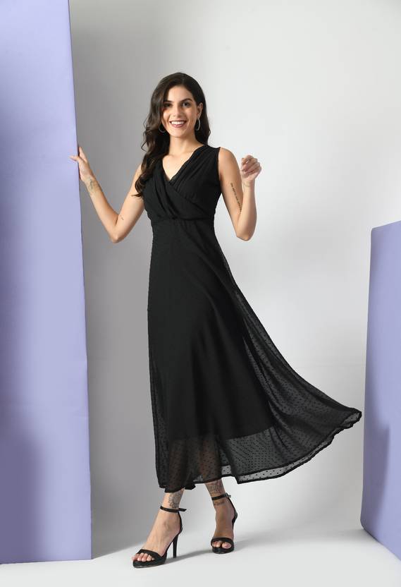 Moshe Women Fit and Flare Black Maxi/Full Length Dress
