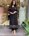 Trending Angarkha Kurti with pant.Beautiful Crafted with Elephant Motif Embrodery at the hemline. Designed With V Neck , 3/4 Sleeve and Angarkha Style Kurta.