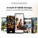 Unlock the full potential of your smartphone with an unbeatable combination of speed and storage space. Featuring an in-built 8 GB of RAM, seamlessly switches between apps and tasks with unprecedented ease. You can make it even faster with up to 24GB of RAM using the RAM Boost, with a generous 128 GB of internal storage and expandable options, you'll have all the room you need for your apps, media, and files. Capture and keep memories with virtually limitless capacity.