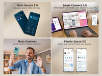 • Moto Secure: A one-stop privacy hub to manage connections, control permissions, and protect sensitive data with AI-powered security. • Smart Connect (Miracast): Expand your phone’s potential—game, video call, and work on a big screen seamlessly. • Family Space: A safe, customizable space for kids with screen time limits, app controls, and multiple profiles. • Gestures: Intuitive actions for quick access—twist to open the camera, chop to turn on the flashlight, or double-tap to launch apps.
