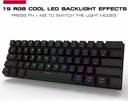 MULTI-DEVICE and DUAL CONNECTIVITY MECHANICAL GAMING KEYBOARD 'Support USB wired/ wireless 3.0,Designed with ultra-thin, light weight, small size and concise outlook, CK62 keyboard is handy,61 Keys Compact portable mechanical gaming keyboard with custom mechanical feeling keyboard switches. Designed for longevity with greater durability and responsiveness. The switches are of the highest quality, tested for 50 million keystrokes HIGH QUALITY AND RELIABLE PERFORMANCE 'Compact ergonomic design and high quality durable ABS construction with plate-mounted mechanical keys and switches,All 61 keys have individual switches with full n-key rollover and anti-ghosting for flawless performance,Support 14 kinds of LED lighting effects, support lock"WIN"function, and lock"WIN"and lock APP key , this gaming keyboard adopts double injection technology and suspended keycaps, not discolored and more wear-resistant easily