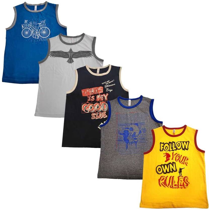 Motus Boys & Girls Printed Pure Cotton Regular T Shirt (Multicolor, Pack of 5)