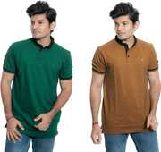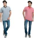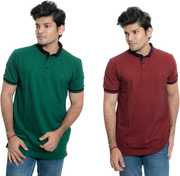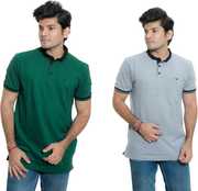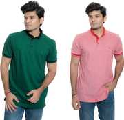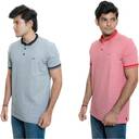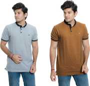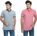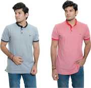 Motus Solid Men Mandarin Collar Pink, Grey T-Shirt