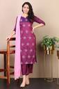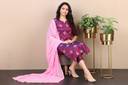 This elegant purple coloured kurta set from Mouhu will help you feel elegant and modest at any occasion .accessories this kurta set with sparkly bangles and heels for an elegant look