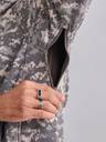 For a personalized fit, the jacket is equipped with an elastic cord at the waist and adjustable wrist cuffs, enabling wearers to tailor the garment to their preferences. Furthermore, the compactly folded hood discreetly located at the collar's back provides reliable protection against rain or snow. The inclusion of side Velcro panels on the sleeves allows for the attachment of a wide range of moral patches, adding versatility and customization options.