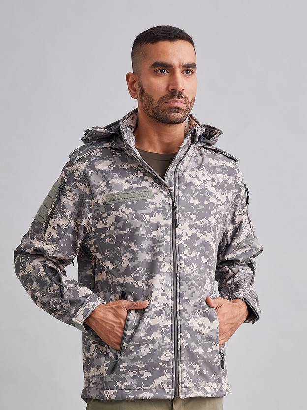 Men's Camouflage Printed Super Digital SoftShell Ripstop Tactical Hooded Jacket