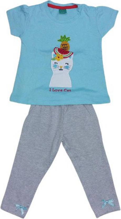 Baby Girls Hello Kitty Casual T-shirt Pant (Blue)