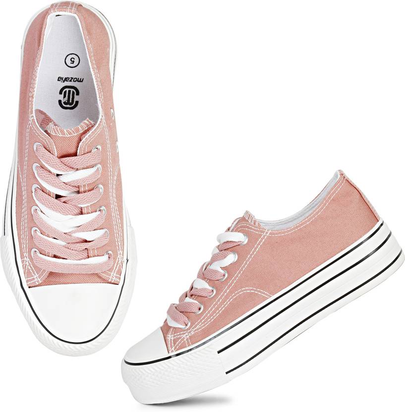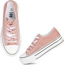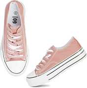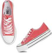MOZAFIA Comfortable Plim Double sole Canvas Lace-up Casual Sneakers Shoes For Women (Pink , 6)