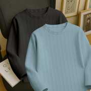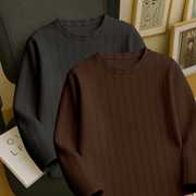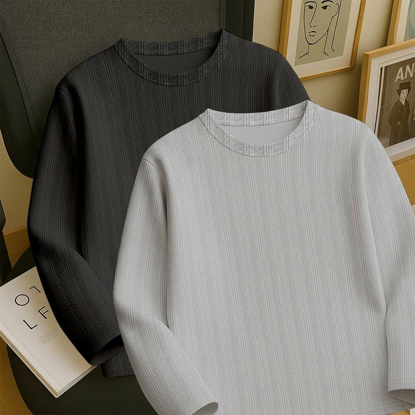#A stylish for long-sleeve shirt designed for a modern, masculine look.#Slim-fit silhouette enhances the physique while maintaining comfort.#Features a subtle textured vertical pattern for added depth and style.#Ideal for casual outings, streetwear looks, or layering in cooler seasons.#A versatile men’s top that pairs well with jeans, joggers, or tailored pants.#Clean crew neck design adds to the minimalist, contemporary feel.