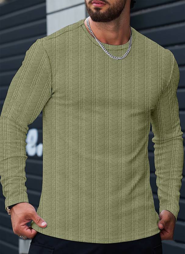 Elevate your casual wardrobe with this Men’s Textured Full Sleeve T-Shirt, designed for both comfort and style. Crafted from premium-quality stretch cotton blend fabric, it features a ribbed textured pattern that adds a touch of sophistication to your everyday look. The rich brown hue offers a warm, modern vibe, making it perfect for pairing with jeans or joggers. Its slim-fit silhouette ensures a flattering shape while providing ease of movement for all-day wear. Features: Full sleeves with a sleek, body-hugging fit Soft, breathable, and stretchable fabric Ribbed textured pattern for a premium finish Crew neckline for a clean, timeless look Perfect for casual outings, gym wear, or layering in cooler weather Style Tip: Pair it with black joggers and sneakers for a bold streetwear-inspired look