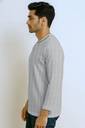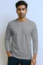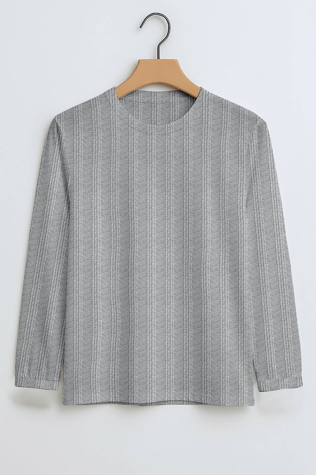 #A stylish for long-sleeve shirt designed for a modern, masculine look.#Slim-fit silhouette enhances the physique while maintaining comfort.#Features a subtle textured vertical pattern for added depth and style.#Ideal for casual outings, streetwear looks, or layering in cooler seasons.#A versatile men’s top that pairs well with jeans, joggers, or tailored pants.#Clean crew neck design adds to the minimalist, contemporary feel.
