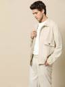 Elevate your casual wardrobe with this stylish beige and off-white striped tailored jacket from Mr Bowerbird. Crafted from comfortable cotton fabric, it features a smart stand collar, a convenient zip closure, and full-length sleeves. Designed with two pockets for functionality and a straight hemline, this woven jacket is a perfect choice for summer outings. Its versatile design makes it easy to pair with your favorite jeans and sneakers.