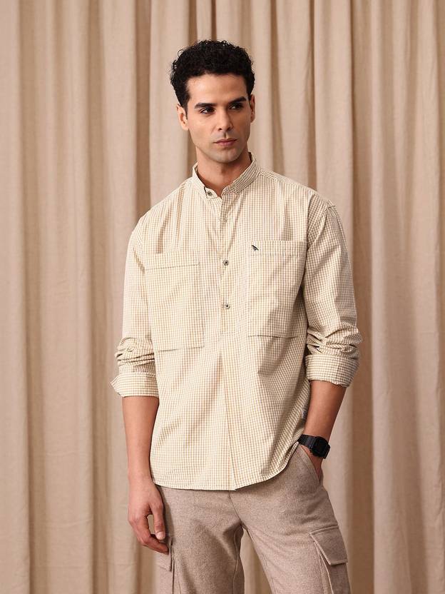 Mr Bowerbird Men Checkered Casual Beige Shirt