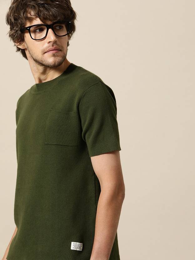 Mr Bowerbird Solid Men Round Neck Dark Green T-Shirt