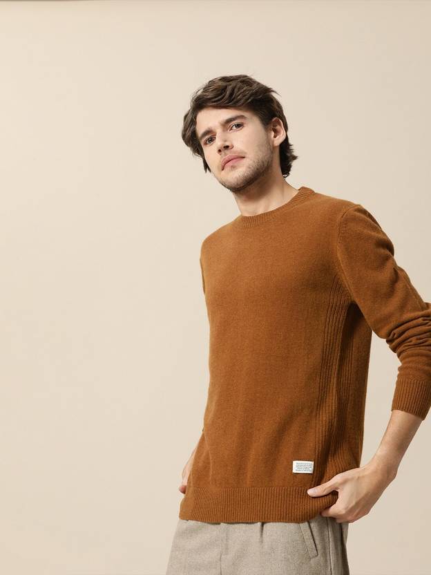 Mr Bowerbird Solid Round Neck Casual Men Brown Sweater