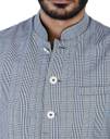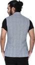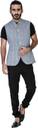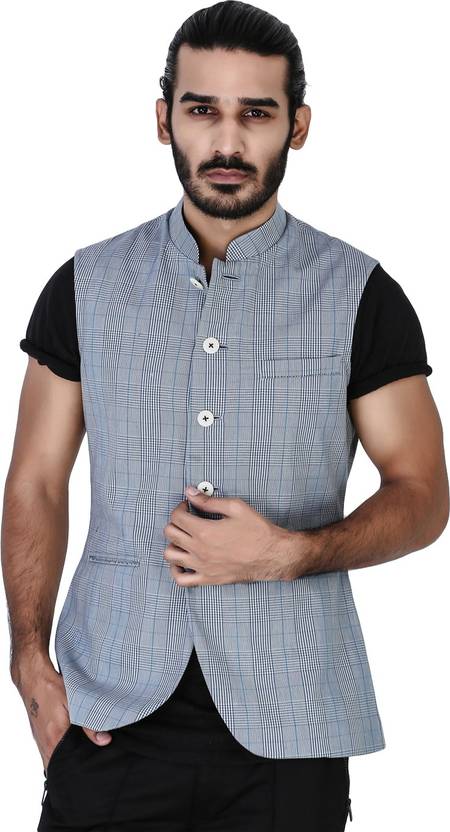 Grey & Blue Plaid Formal Nehru Jacket Solid Men Waistcoat