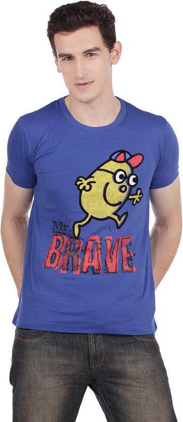 Sport a uber cool look as you don this casual T-shirt from the fashion house of Mr. Men Little Miss. This blue printed T-shirt has a pigment and flock print at the front to give you a cool casual look wherever you go. Designed with a round neck, this T-shirt sports a smart fit and comes with a straight hem and half sleeves to give you an enhanced style at all times. Crafted from cotton, this T-shirt assures to give you the right blend of comfort and style throughout the day.
