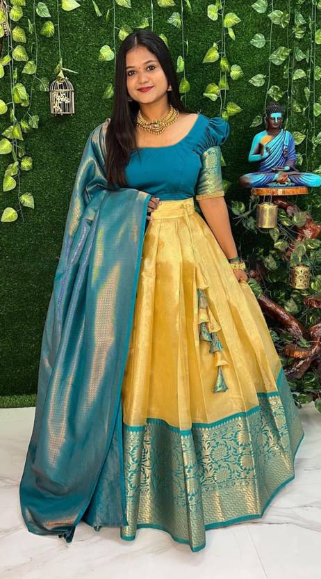 MR Y Floral Print Semi Stitched Lehenga Choli (Blue, Yellow)